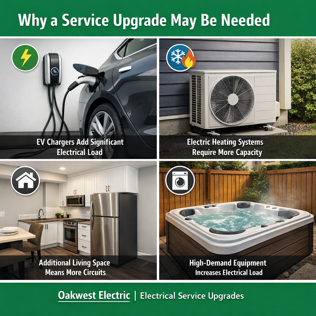 Oakwest Electric performs professional load assessments and electrical service upgrades throughout Metro Vancouver. Whether you’re installing an EV charger, upgrading your heating system, or planning a renovation, our team can help you determine the safest and most reliable solution for your home.